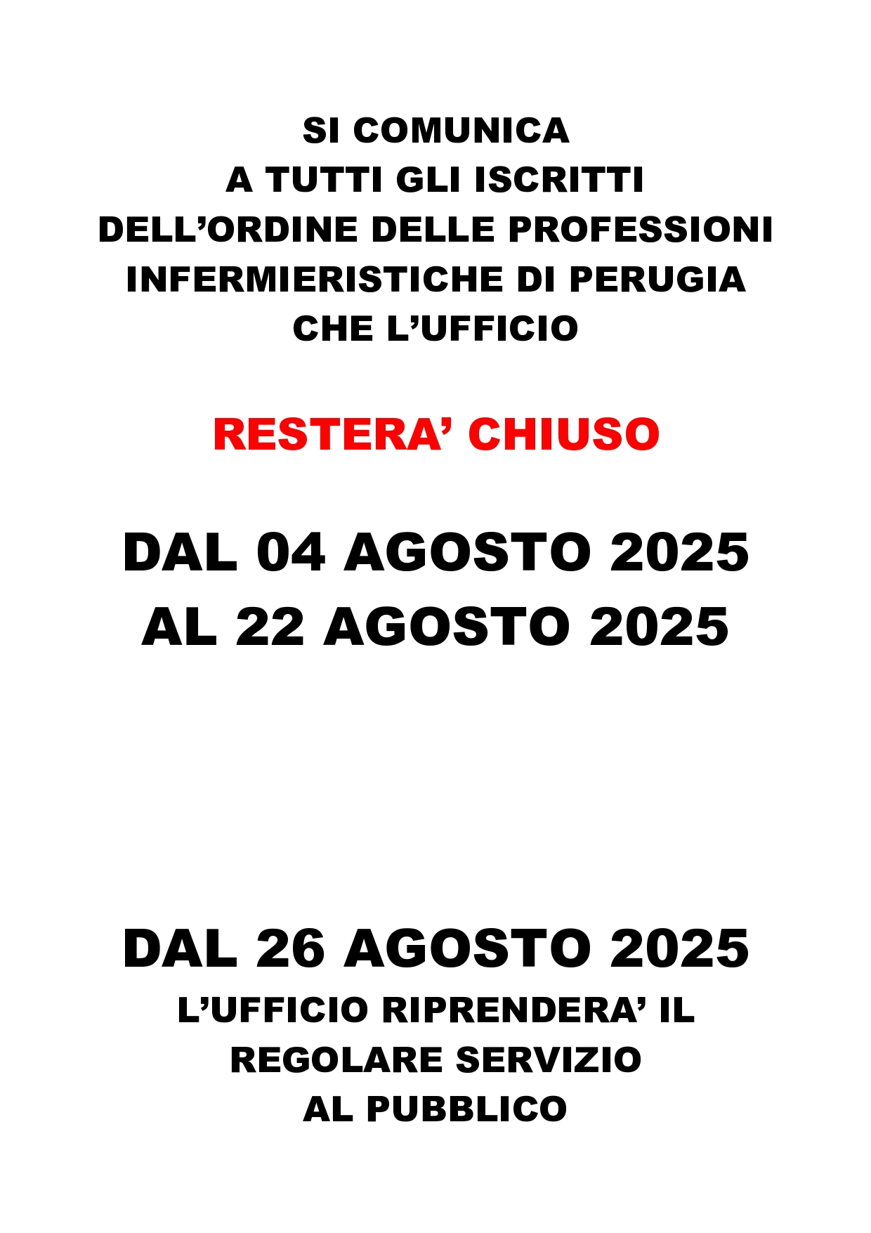 Chiusura estiva