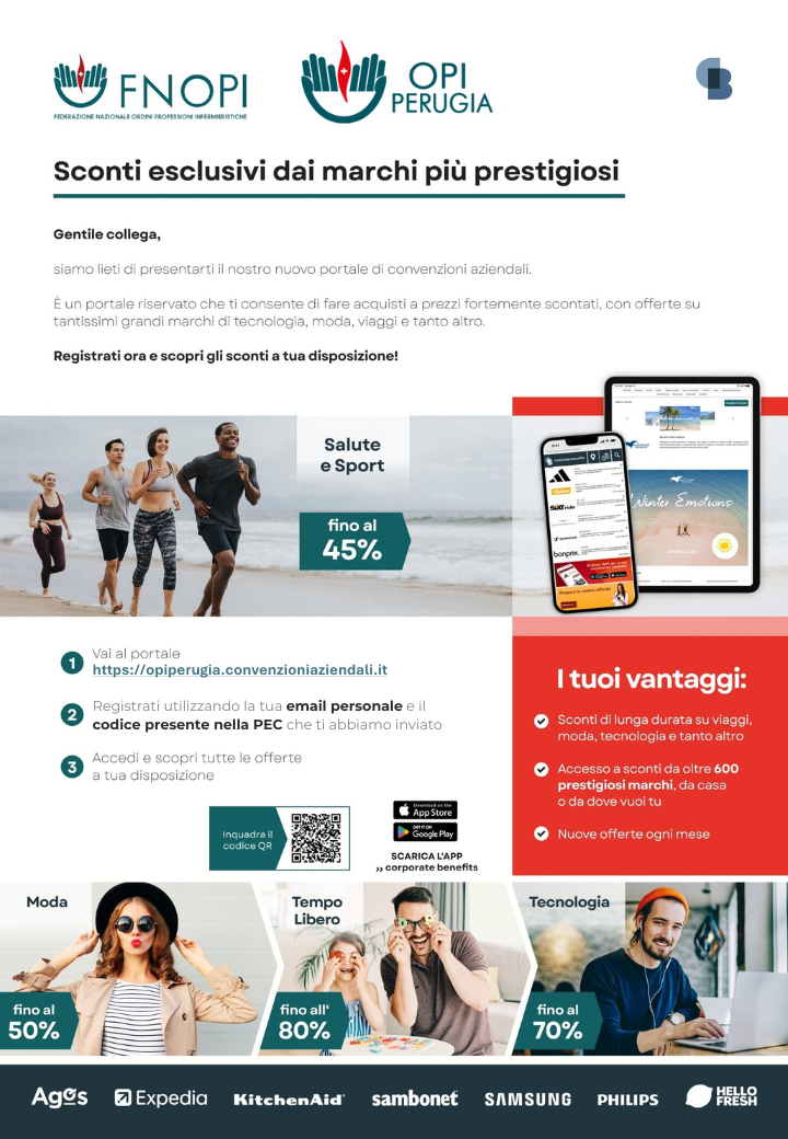 L’Ordine delle Professioni Infermieristiche di Perugia si impegna a sottoscrivere con gli Enti o Privati proponenti specifiche convenzioni, utili ai propri iscritti.